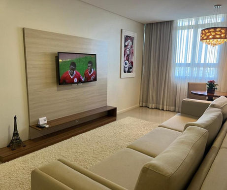 O grande diferencial são os quartos em formato de suíte (sala + quarto). Mesmo as categorias de entrada são muito espaçosas, com sala de estar separada, piso de madeira (higiênico) e mini copa.